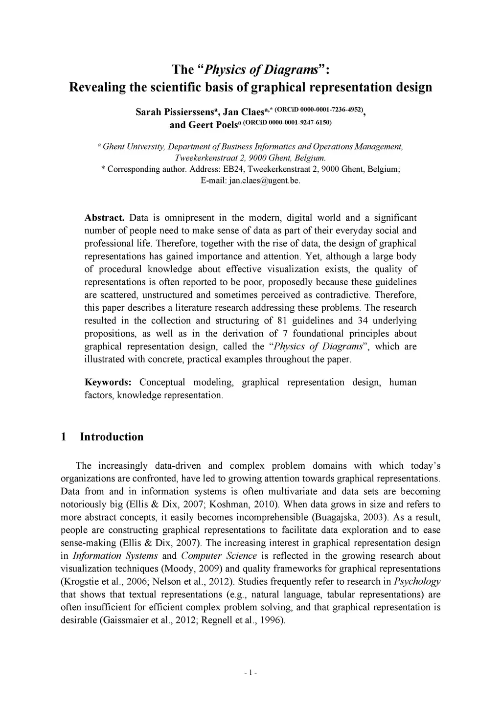 Data is omnipresent in the modern, digital world and a significant number of people need to make sense of data as part of their everyday social and professional life. Therefore, together with the rise of data, the design of graphical representations has gained importance and attention. Yet, although a large body of procedural knowledge about effective visualization exists, the quality of representations is often reported to be poor, proposedly because these guidelines are scattered, unstructured and sometimes perceived as contradictive. Therefore, this paper describes a literature research addressing these problems. The research resulted in the collection and structuring of 81 guidelines and 34 underlying propositions, as well as in the derivation of 7 foundational principles about graphical representation design, called the "Physics of Diagrams", which are illustrated with concrete, practical examples throughout the paper.