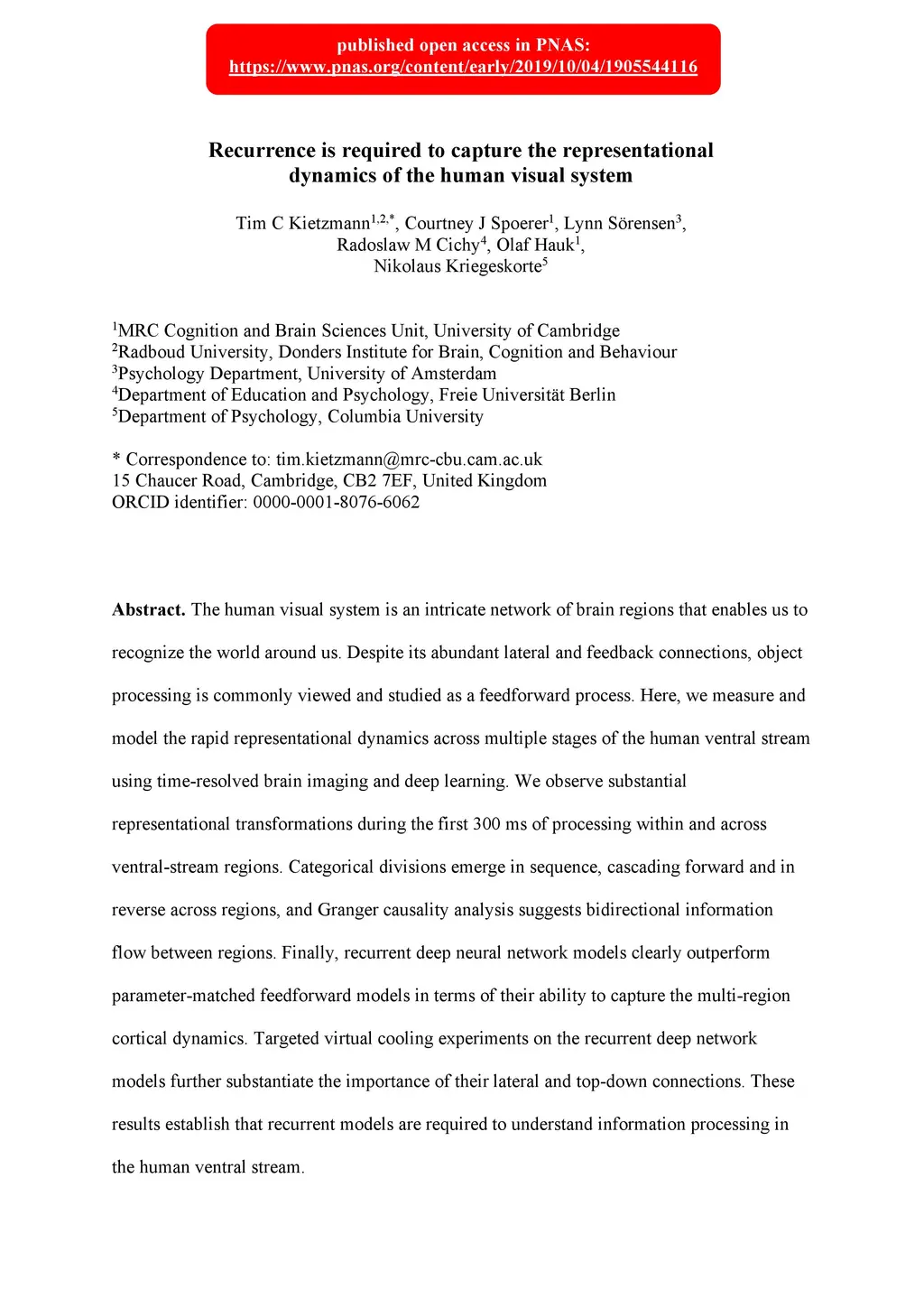 Recurrence is required to capture the representational dynamics of the
