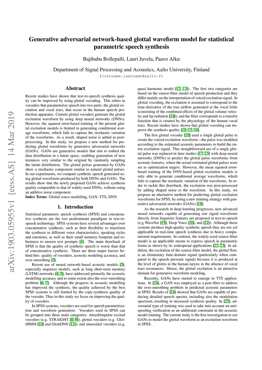 Generative adversarial network-based glottal waveform model for