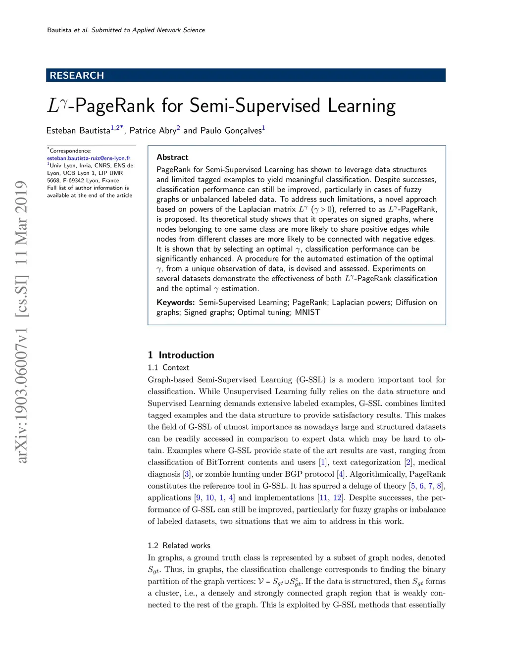 PageRank for Semi-Supervised Learning has shown to leverage data structures and limited tagged examples to yield meaningful classification. Despite successes, classification performance can still be improved, particularly in cases of fuzzy graphs or unbalanced labeled data. To address such limitations, a novel approach based on powers of the Laplacian matrix (), referred to as -PageRank, is proposed. Its theoretical study shows that it operates on signed graphs, where nodes belonging to one same class are more likely to share positive edges while nodes from different classes are more likely to be connected with negative edges. It is shown that by selecting an optimal , classification performance can be significantly enhanced. A procedure for the automated estimation of the optimal , from a unique observation of data, is devised and assessed. Experiments on several datasets demonstrate the effectiveness of both -PageRank classification and the optimal estimation.