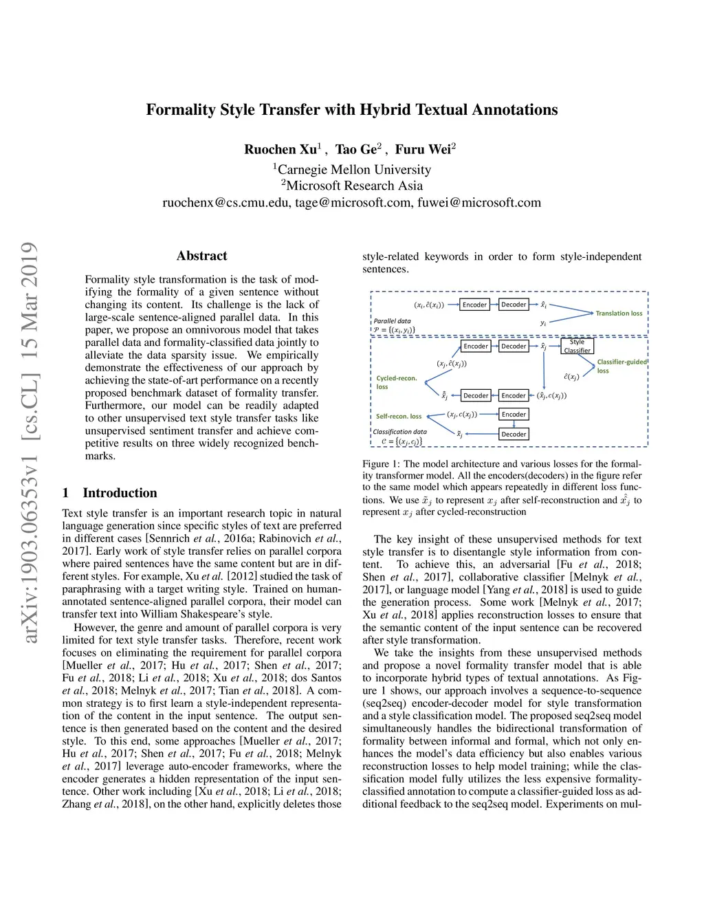Formality style transformation is the task of modifying the formality of a given sentence without changing its content. Its challenge is the lack of large-scale sentence-aligned parallel data. In this paper, we propose an omnivorous model that takes parallel data and formality-classified data jointly to alleviate the data sparsity issue. We empirically demonstrate the effectiveness of our approach by achieving the state-of-art performance on a recently proposed benchmark dataset of formality transfer. Furthermore, our model can be readily adapted to other unsupervised text style transfer tasks like unsupervised sentiment transfer and achieve competitive results on three widely recognized benchmarks.