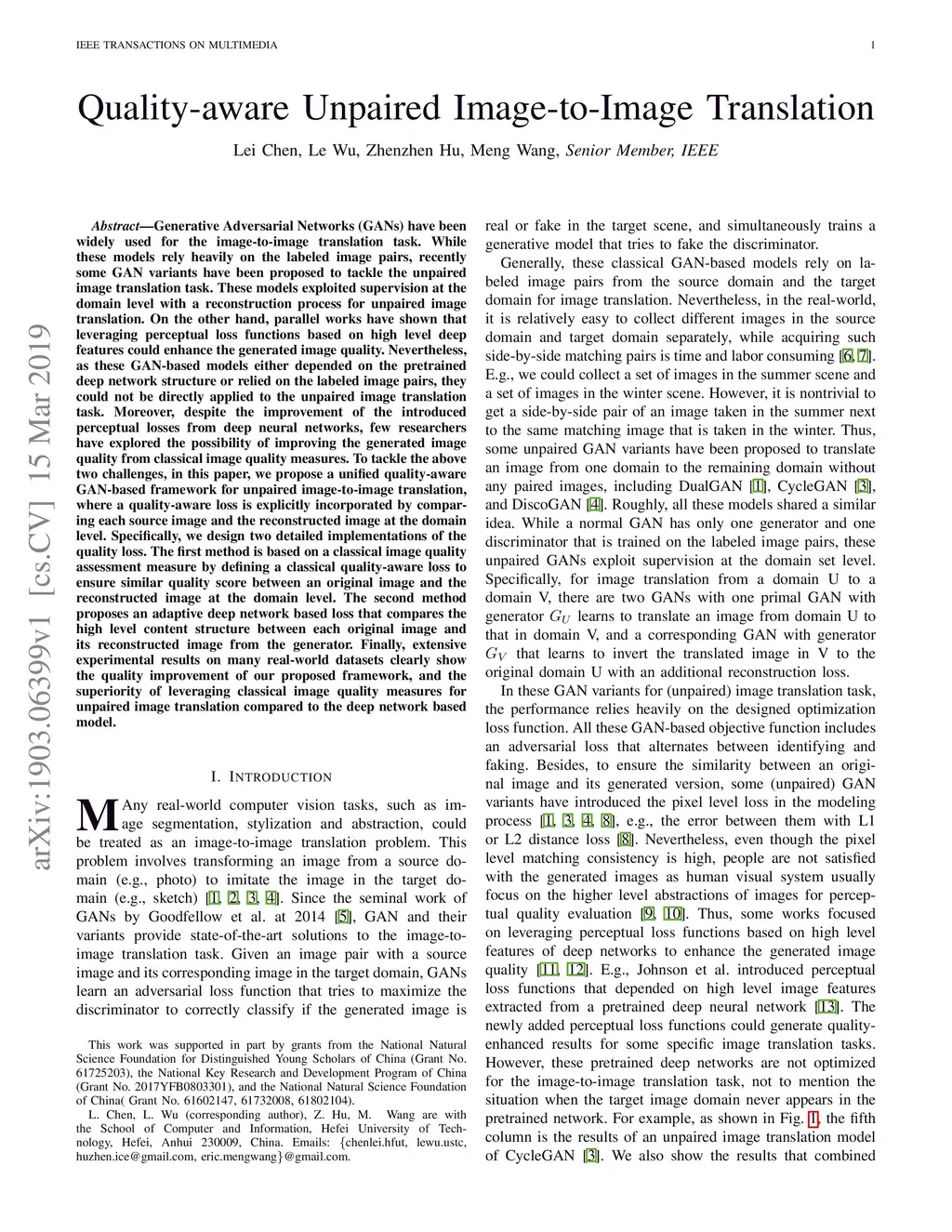 Generative Adversarial Networks (GANs) have been widely used for the image-to-image translation task. While these models rely heavily on the labeled image pairs, recently some GAN variants have been proposed to tackle the unpaired image translation task. These models exploited supervision at the domain level with a reconstruction process for unpaired image translation. On the other hand, parallel works have shown that leveraging perceptual loss functions based on high level deep features could enhance the generated image quality. Nevertheless, as these GAN-based models either depended on the pretrained deep network structure or relied on the labeled image pairs, they could not be directly applied to the unpaired image translation task. Moreover, despite the improvement of the introduced perceptual losses from deep neural networks, few researchers have explored the possibility of improving the generated image quality from classical image quality measures. To tackle the above two challenges, in this paper, we propose a unified quality-aware GAN-based framework for unpaired image-to-image translation, where a quality-aware loss is explicitly incorporated by comparing each source image and the reconstructed image at the domain level. Specifically, we design two detailed implementations of the quality loss. The first method is based on a classical image quality assessment measure by defining a classical quality-aware loss. The second method proposes an adaptive deep network based loss. Finally, extensive experimental results on many real-world datasets clearly show the quality improvement of our proposed framework, and the superiority of leveraging classical image quality measures for unpaired image translation compared to the deep network based model.