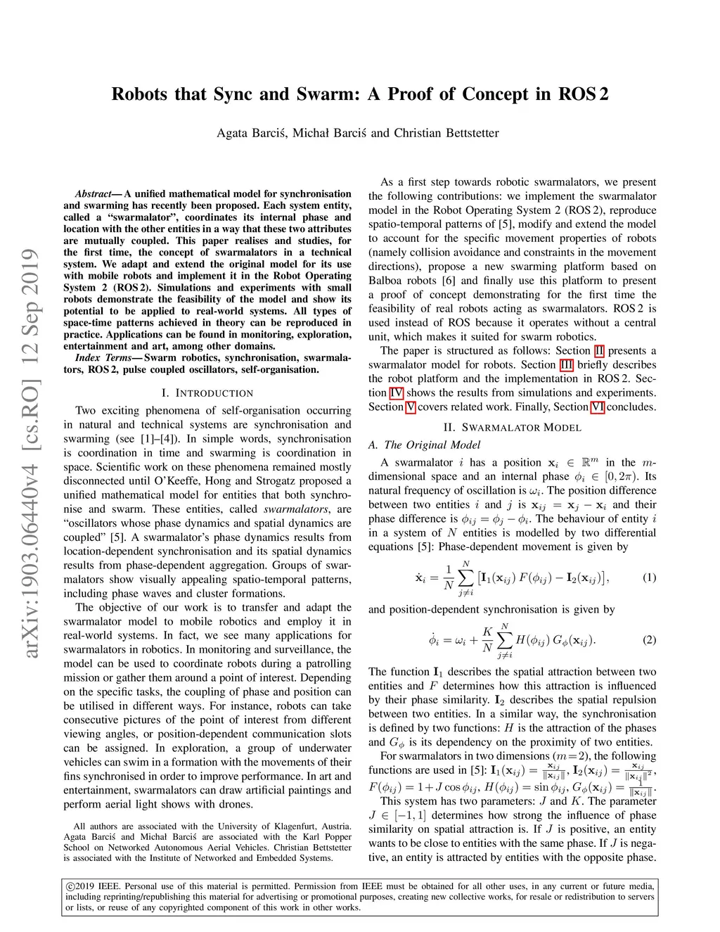 Robots that Sync and Swarm: A Proof of Concept in ROS 2