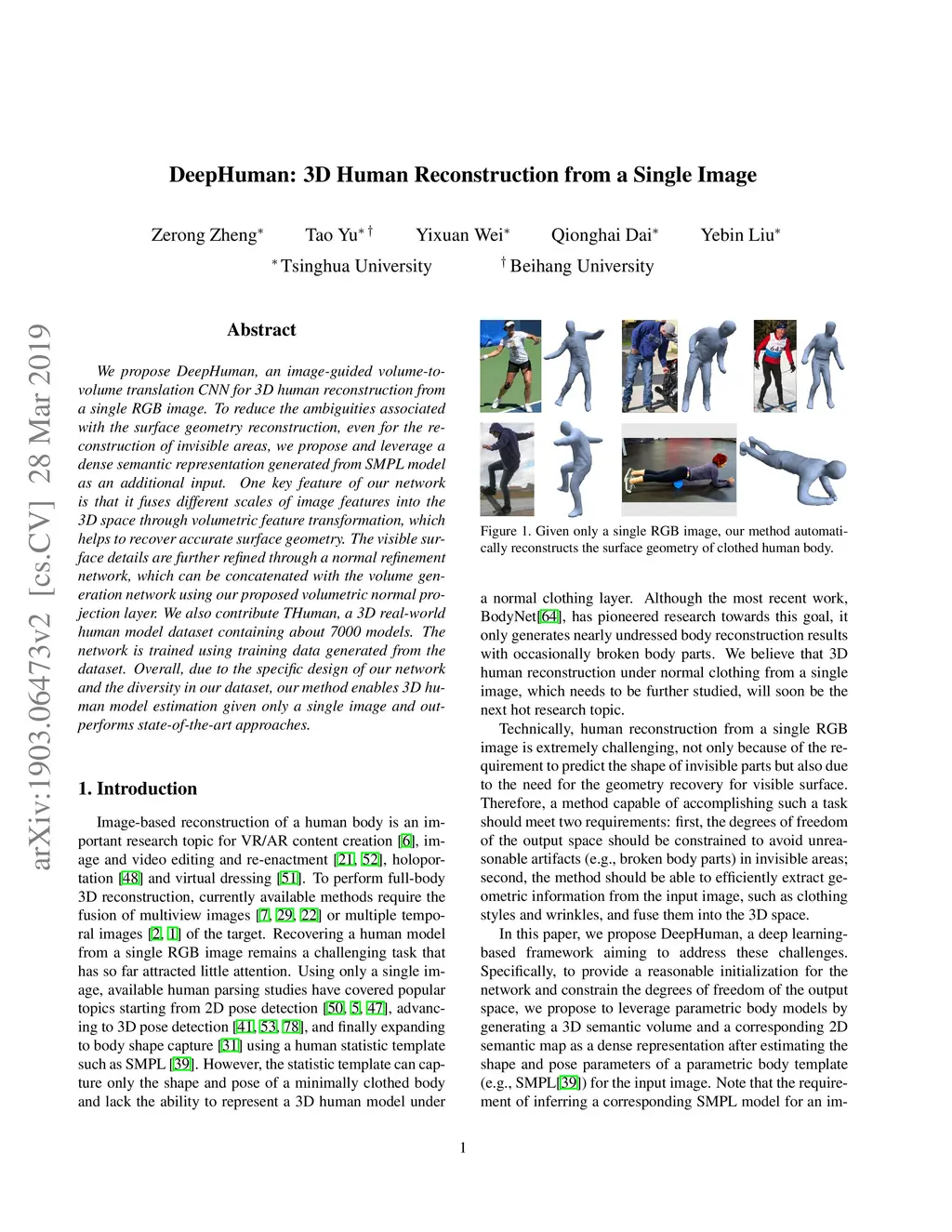 DeepHuman: 3D Human Reconstruction from a Single Image