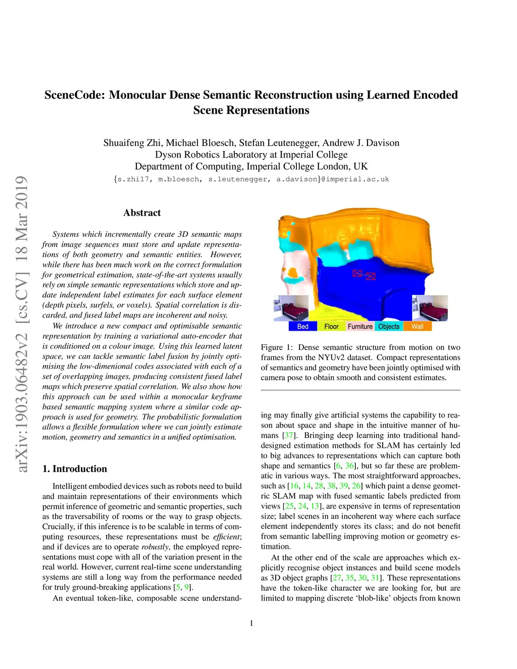 SceneCode: Monocular Dense Semantic Reconstruction using Learned Encoded