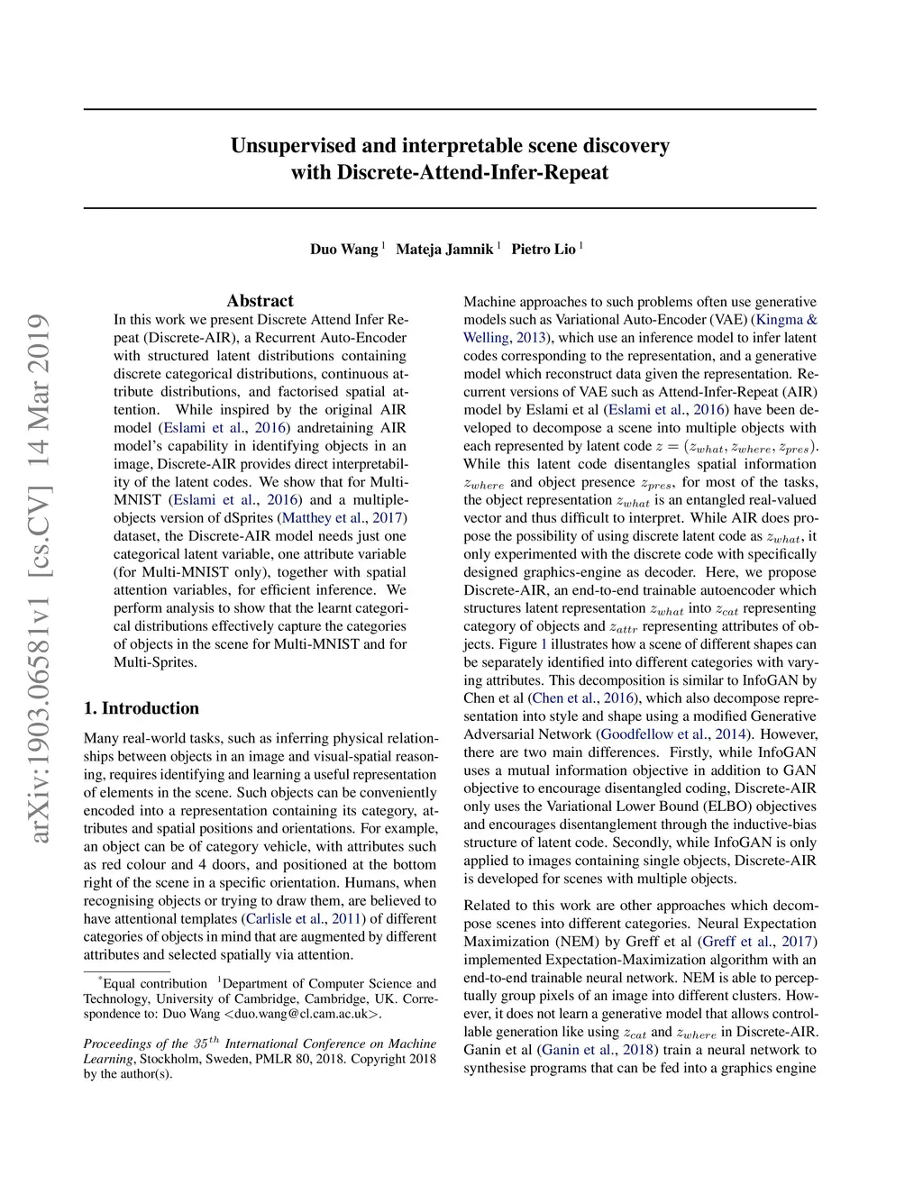 Discrete-Attend-Infer-Repeat