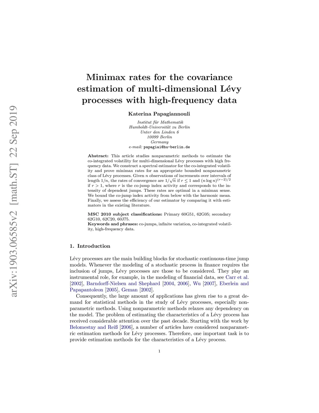 This article studies nonparametric methods to estimate the co-integrated volatility for multi-dimensional L\évy processes with high frequency data. We construct a spectral estimator for the co-integrated volatility and prove minimax rates for an appropriate bounded nonparametric class of semimartingales. Given $ n $ observations of increments over intervals of length , the rates of convergence are $1 / \sqrt{n} $ if $ r \leq 1 $ and $ (n\log n)^{(r-2)/2} $ if $ r>1 $, which are optimal in a minimax sense. We bound the co-jump index activity from below with the harmonic mean. Finally, we assess the efficiency of our estimator by comparing it with estimators in the existing literature.