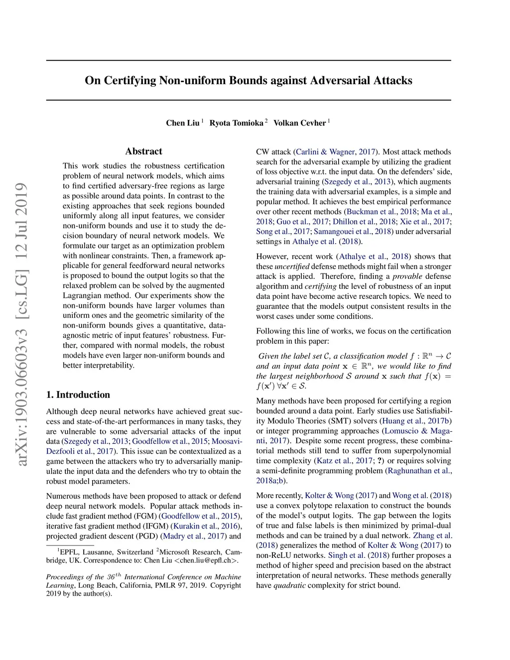 On Certifying Non-uniform Bound against Adversarial Attacks