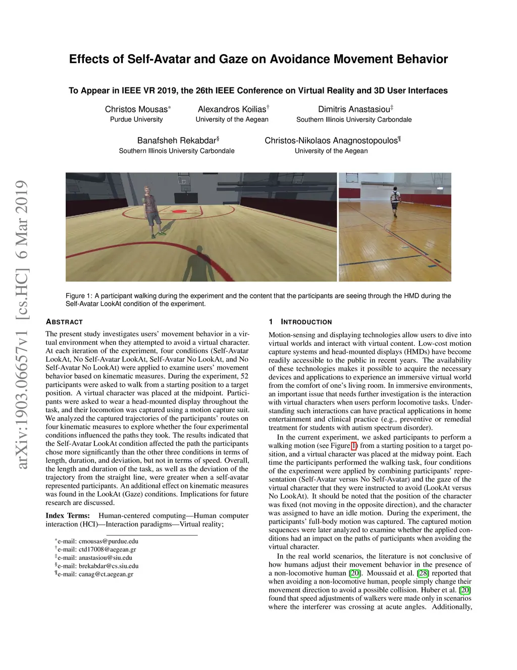 Effects of Self-Avatar and Gaze on Avoidance Movement Behavior