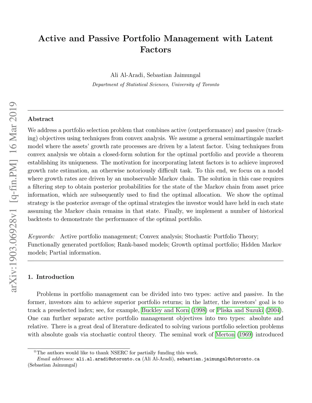 Active and Passive Portfolio Management with Latent Factors