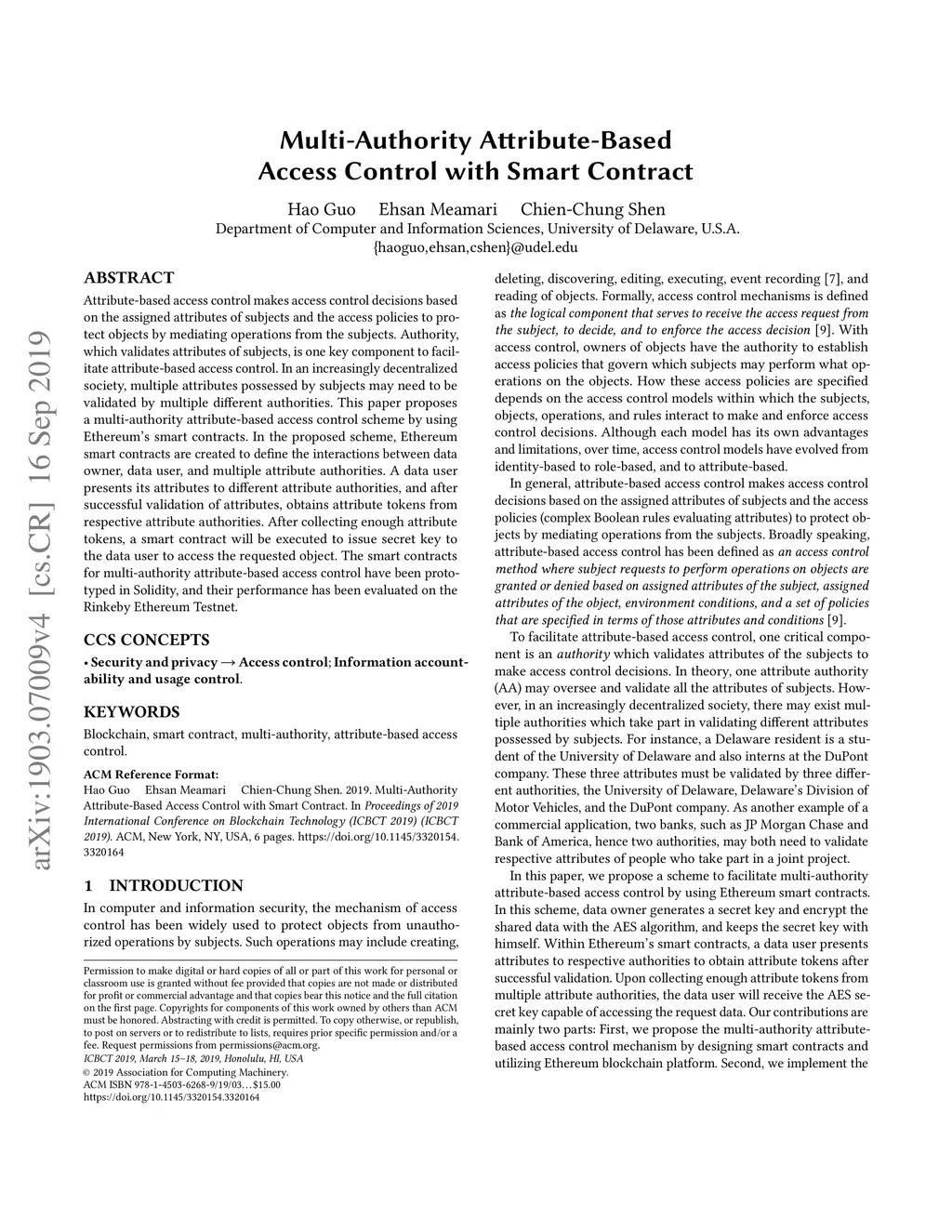 Multi-Authority Attribute-Based Access Control with Smart Contract