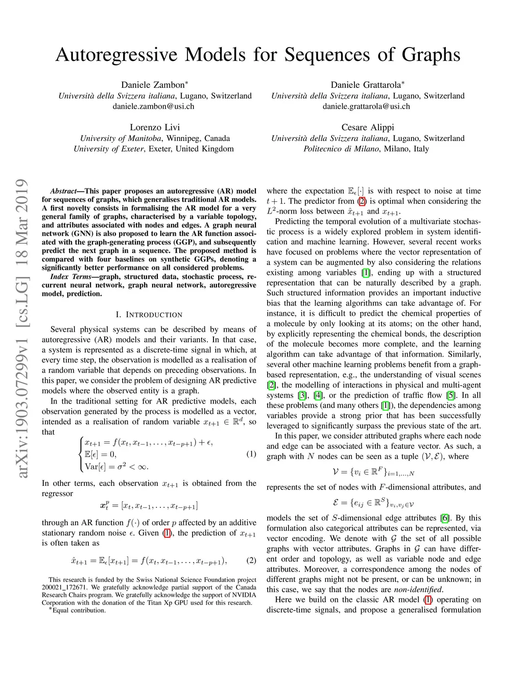 This paper proposes an autoregressive (AR) model for sequences of graphs, which generalises traditional AR models. A first novelty consists in formalising the AR model for a very general family of graphs, characterised by a variable topology, and attributes associated with nodes and edges. A graph neural network (GNN) is also proposed to learn the AR function associated with the graph-generating process (GGP), and subsequently predict the next graph in a sequence. The proposed method is compared with four baselines on synthetic GGPs, denoting a significantly better performance on all considered problems.