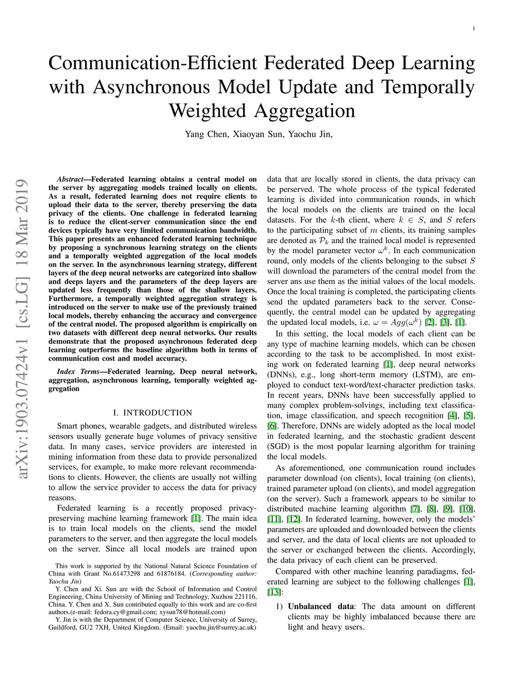 Communication-Efficient Federated Deep Learning with Asynchronous Model