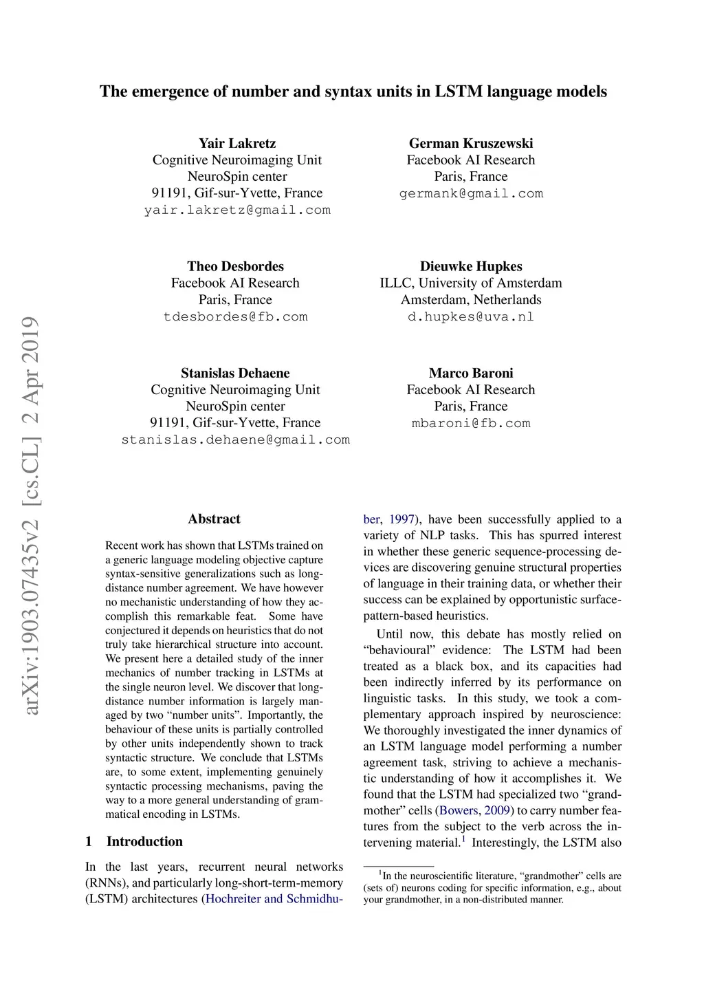 Recent work has shown that LSTMs trained on a generic language modeling objective capture syntax-sensitive generalizations such as long-distance number agreement. We have however no mechanistic understanding of how they accomplish this remarkable feat. Some have conjectured it depends on heuristics that do not truly take hierarchical structure into account. We present here a detailed study of the inner mechanics of number tracking in LSTMs at the single neuron level. We discover that long-distance number information is largely managed by two `number units'. Importantly, the behaviour of these units is partially controlled by other units independently shown to track syntactic structure. We conclude that LSTMs are, to some extent, implementing genuinely syntactic processing mechanisms, paving the way to a more general understanding of grammatical encoding in LSTMs.