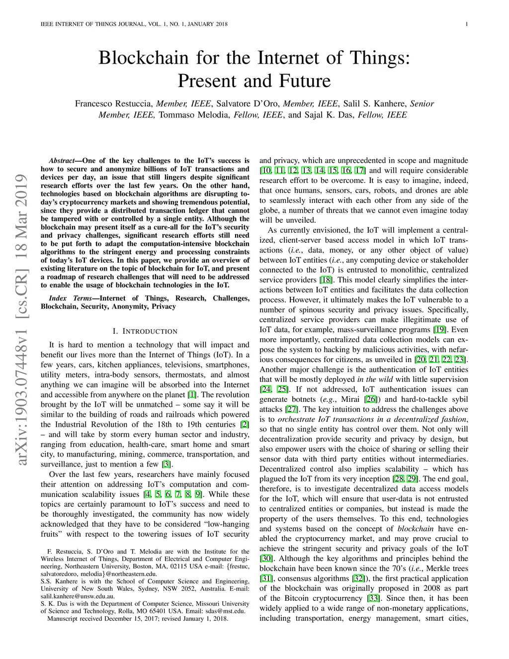 Blockchain for the Internet of Things: Present and Future