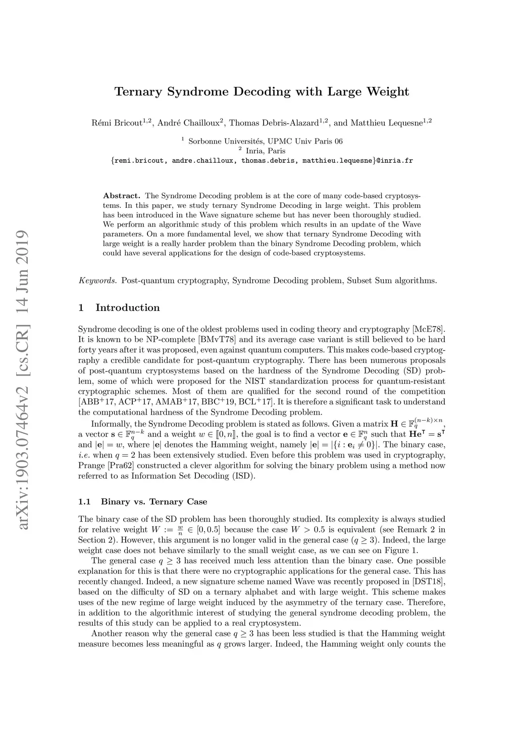 The Syndrome Decoding problem is at the core of many code-based cryptosystems. In this paper, we study ternary Syndrome Decoding in large weight. This problem has been introduced in the Wave signature scheme but has never been thoroughly studied. We perform an algorithmic study of this problem which results in an update of the Wave parameters. On a more fundamental level, we show that ternary Syndrome Decoding with large weight is a really harder problem than the binary Syndrome Decoding problem, which could have several applications for the design of code-based cryptosystems.