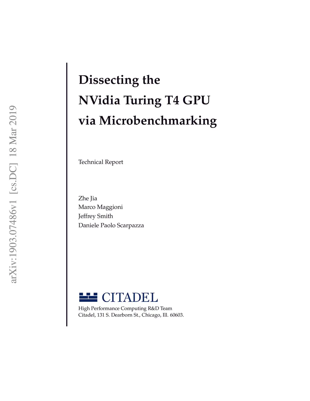 Dissecting the NVidia Turing T4 GPU via Microbenchmarking