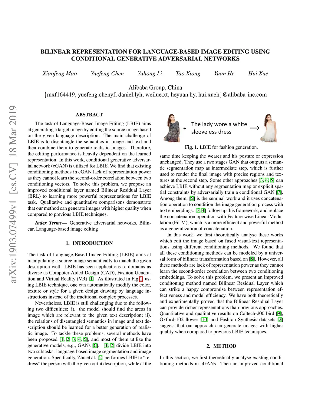 The task of Language-Based Image Editing (LBIE) aims at generating a target image by editing the source image based on the given language description. The main challenge of LBIE is to disentangle the semantics in image and text and then combine them to generate realistic images. Therefore, the editing performance is heavily dependent on the learned representation. In this work, conditional generative adversarial network (cGAN) is utilized for LBIE. We find that existing conditioning methods in cGAN lack of representation power as they cannot learn the second-order correlation between two conditioning vectors. To solve this problem, we propose an improved conditional layer named Bilinear Residual Layer (BRL) to learning more powerful representations for LBIE task. Qualitative and quantitative comparisons demonstrate that our method can generate images with higher quality when compared to previous LBIE techniques.