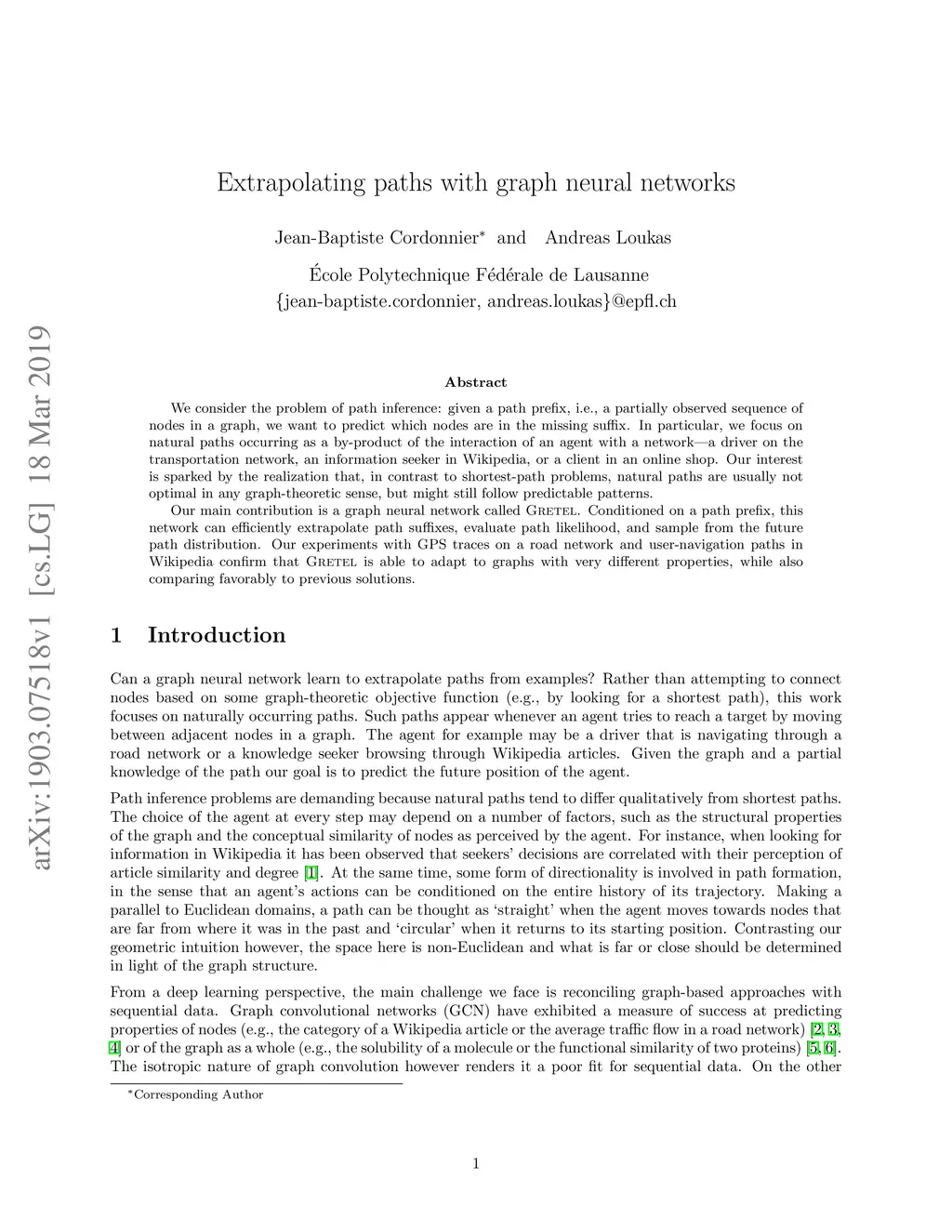 We consider the problem of path inference: given a path prefix, i.e., a partially observed sequence of nodes in a graph, we want to predict which nodes are in the missing suffix. In particular, we focus on natural paths occurring as a by-product of the interaction of an agent with a network---a driver on the transportation network, an information seeker in Wikipedia, or a client in an online shop. Our interest is sparked by the realization that, in contrast to shortest-path problems, natural paths are usually not optimal in any graph-theoretic sense, but might still follow predictable patterns. Our main contribution is a graph neural network called Gretel. Conditioned on a path prefix, this network can efficiently extrapolate path suffixes, evaluate path likelihood, and sample from the future path distribution. Our experiments with GPS traces on a road network and user-navigation paths in Wikipedia confirm that Gretel is able to adapt to graphs with very different properties, while also comparing favorably to previous solutions.