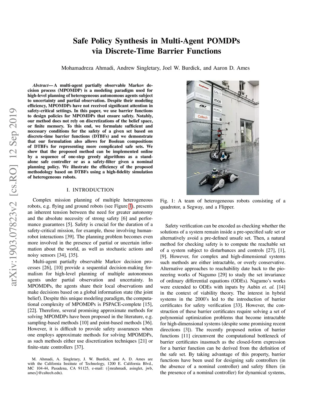 Safe Policy Synthesis in Multi-Agent POMDPs via Discrete-Time Barrier