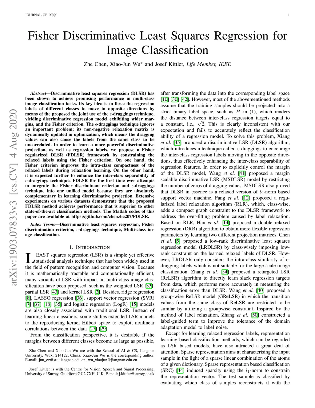 Fisher Discriminative Least Squares Regression for Image Classification