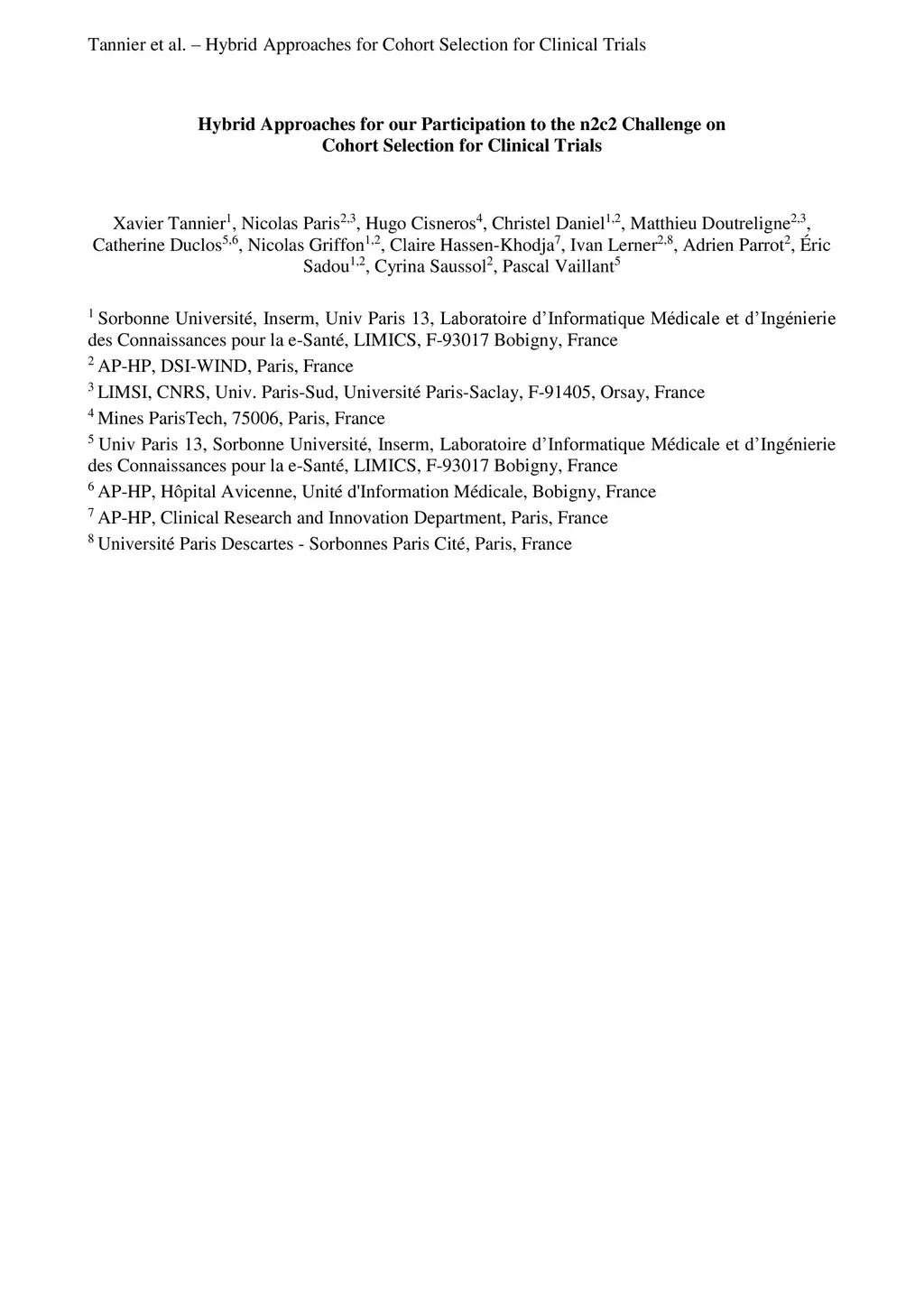 Hybrid Approaches for our Participation to the n2c2 Challenge on Cohort