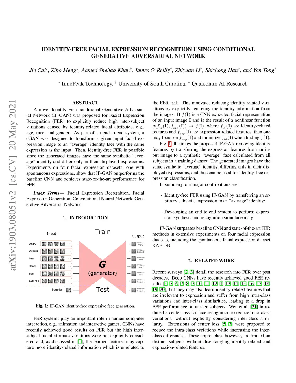 A novel Identity-Free conditional Generative Adversarial Network (IF-GAN) was proposed for Facial Expression Recognition (FER) to explicitly reduce high inter-subject variations caused by identity-related facial attributes, e.g., age, race, and gender. As part of an end-to-end system, a cGAN was designed to transform a given input facial expression image to an "average" identity face with the same expression as the input. Then, identity-free FER is possible since the generated images have the same synthetic "average" identity and differ only in their displayed expressions. Experiments on four facial expression datasets, one with spontaneous expressions, show that IF-GAN outperforms the baseline CNN and achieves state-of-the-art performance for FER.