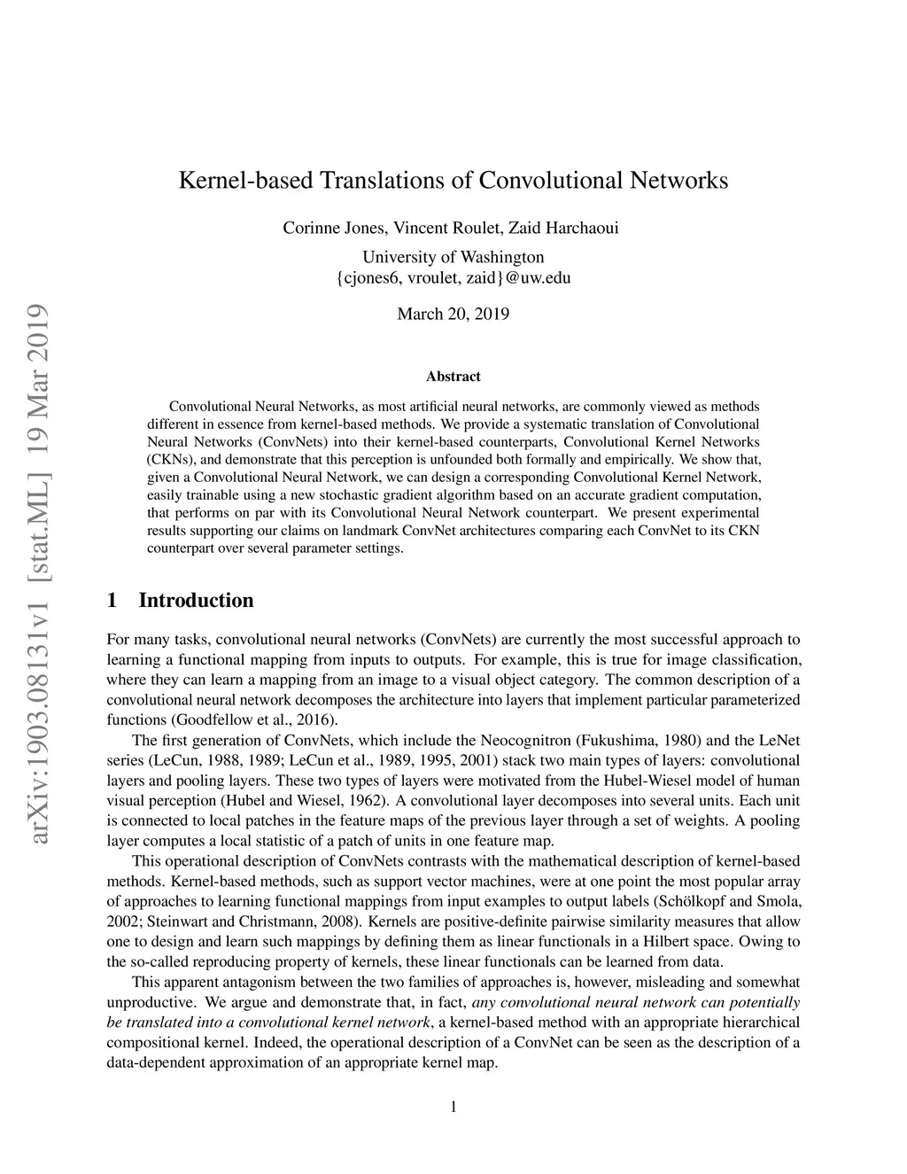 Kernel-based Translations of Convolutional Networks