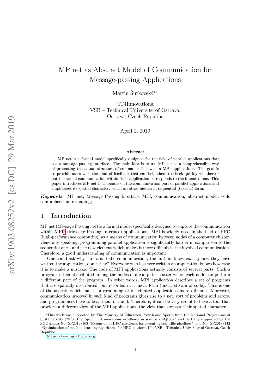 MP net is a formal model specifically designed for the field of parallel applications that use a message passing interface. The main idea is to use MP net as a comprehensible way of presenting the actual structure of communication within MPI applications. The goal is to provide users with the kind of feedback that can help them to check quickly whether or not the actual communication within their application corresponds to the intended one. This paper introduces MP net that focuses on the communication part of parallel applications and emphasizes its spatial character, which is rather hidden in sequential (textual) form.