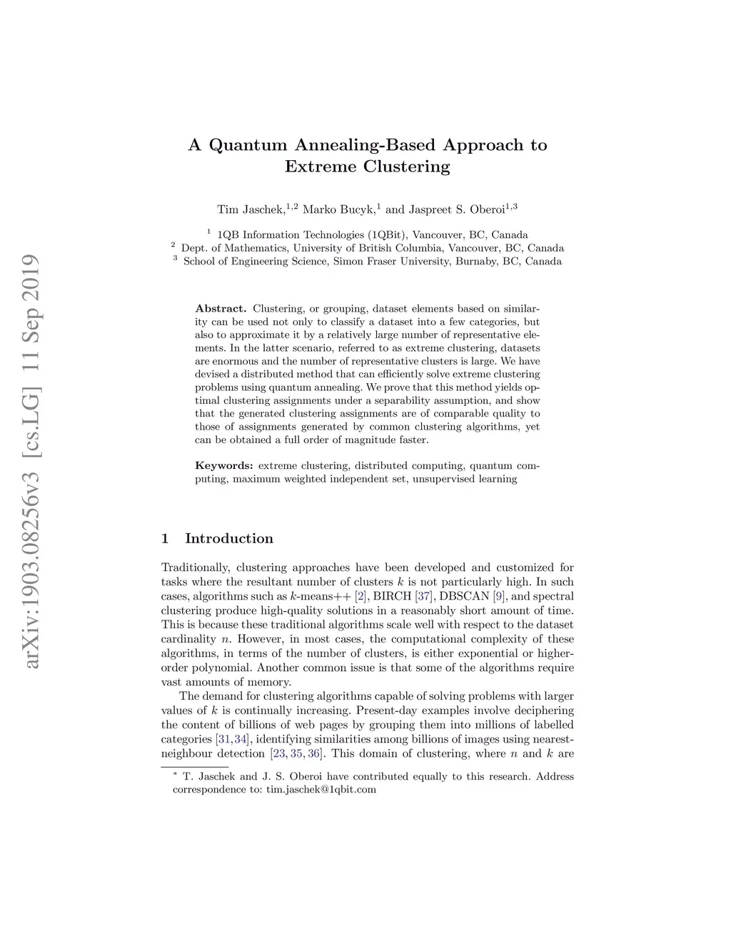 A Quantum Annealing-Based Approach to Extreme Clustering