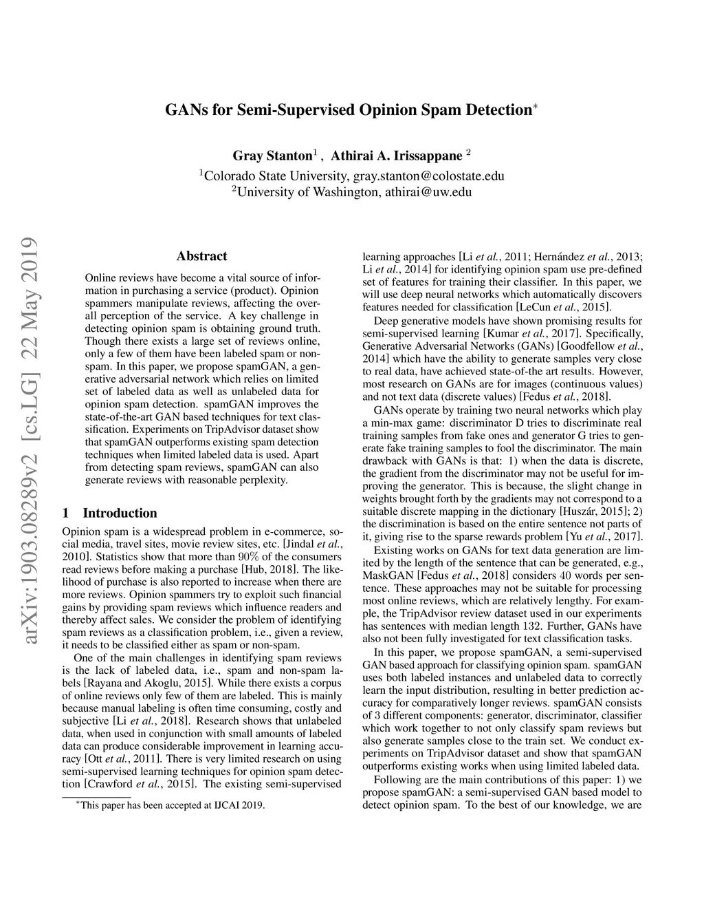 GANs for Semi-Supervised Opinion Spam Detection