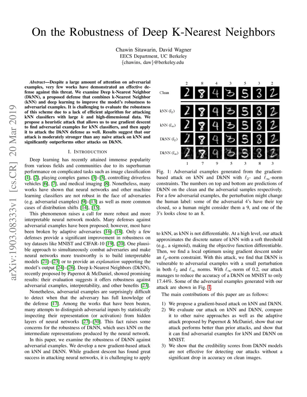 Despite a large amount of attention on adversarial examples, very few works have demonstrated an effective defense against this threat. We examine Deep k-Nearest Neighbor (DkNN), a proposed defense that combines k-Nearest Neighbor (kNN) and deep learning to improve the model's robustness to adversarial examples. It is challenging to evaluate the robustness of this scheme due to a lack of efficient algorithm for attacking kNN classifiers with large k and high-dimensional data. We propose a heuristic attack that allows us to use gradient descent to find adversarial examples for kNN classifiers, and then apply it to attack the DkNN defense as well. Results suggest that our attack is moderately stronger than any naive attack on kNN and significantly outperforms other attacks on DkNN.