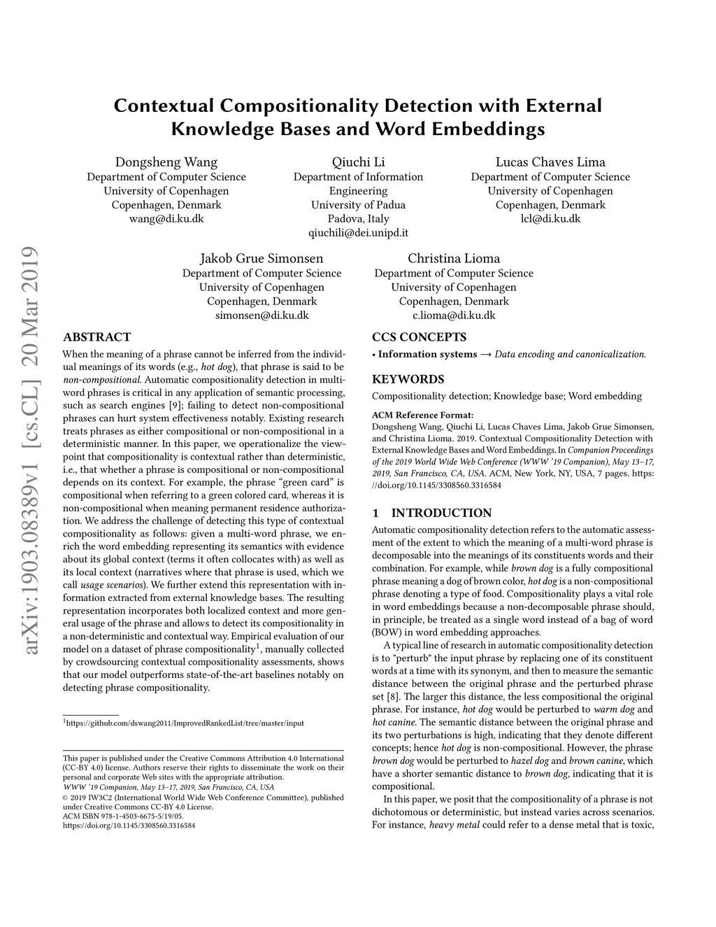 Contextual Compositionality Detection with External Knowledge Bases
