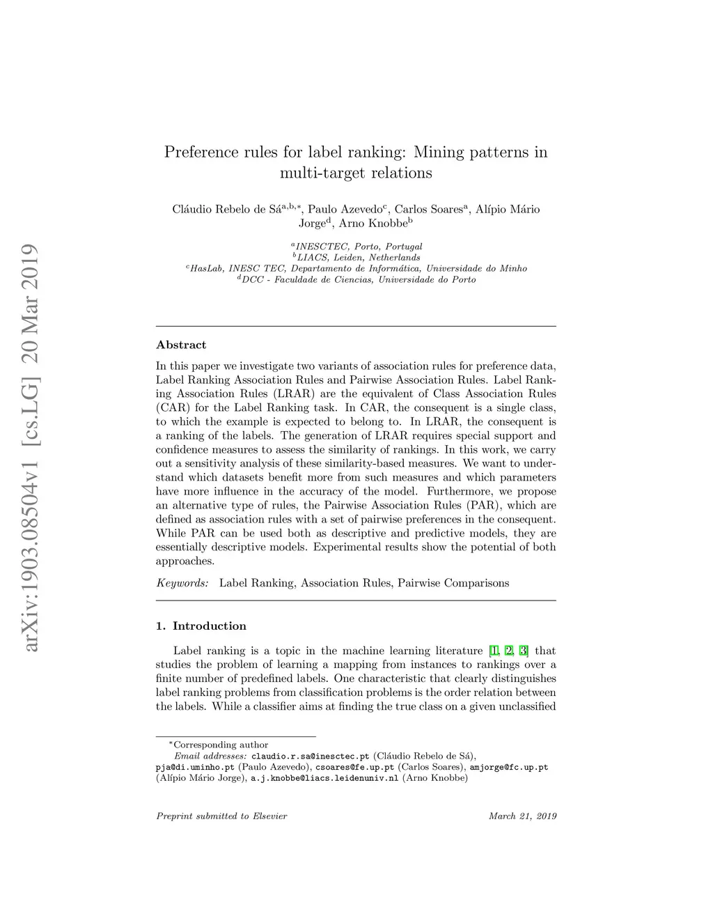 In this paper we investigate two variants of association rules for preference data, Label Ranking Association Rules and Pairwise Association Rules. Label Ranking Association Rules (LRAR) are the equivalent of Class Association Rules (CAR) for the Label Ranking task. In CAR, the consequent is a single class, to which the example is expected to belong to. In LRAR, the consequent is a ranking of the labels. The generation of LRAR requires special support and confidence measures to assess the similarity of rankings. In this work, we carry out a sensitivity analysis of these similarity-based measures. We want to understand which datasets benefit more from such measures and which parameters have more influence in the accuracy of the model. Furthermore, we propose an alternative type of rules, the Pairwise Association Rules (PAR), which are defined as association rules with a set of pairwise preferences in the consequent. While PAR can be used both as descriptive and predictive models, they are essentially descriptive models. Experimental results show the potential of both approaches.