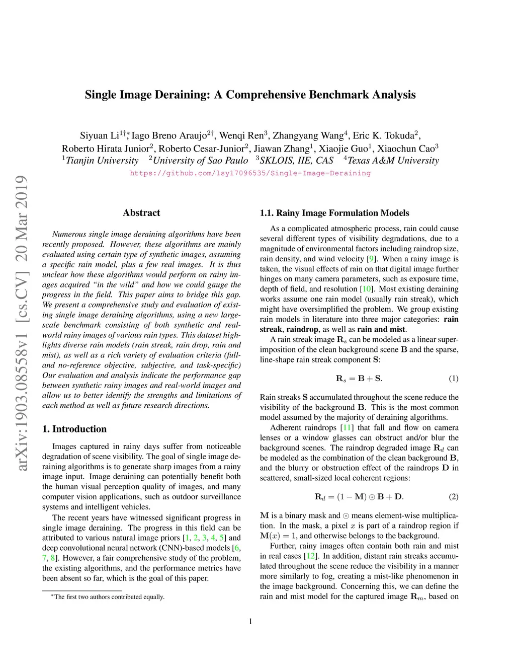 Single Image Deraining: A Comprehensive Benchmark Analysis