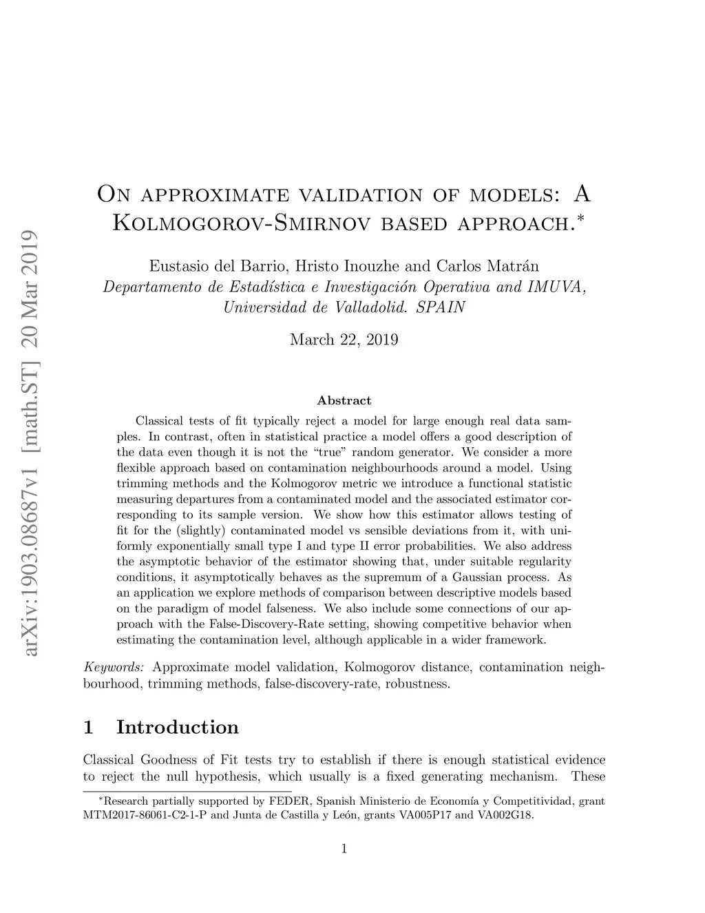 On approximate validation of models: A Kolmogorov-Smirnov based approach