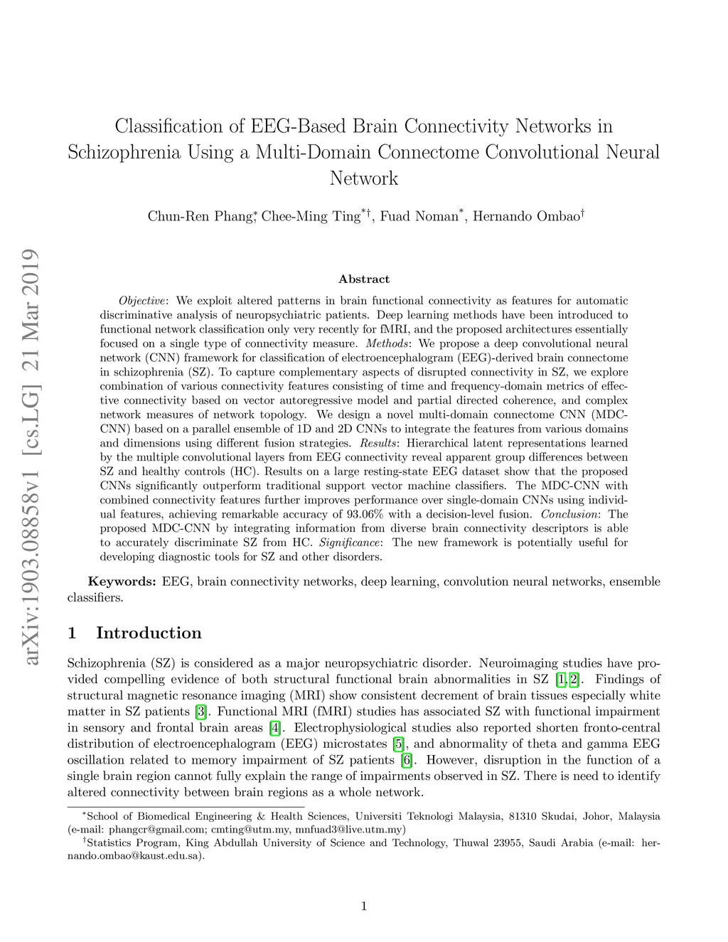 Classification of EEG-Based Brain Connectivity Networks in Schizophrenia