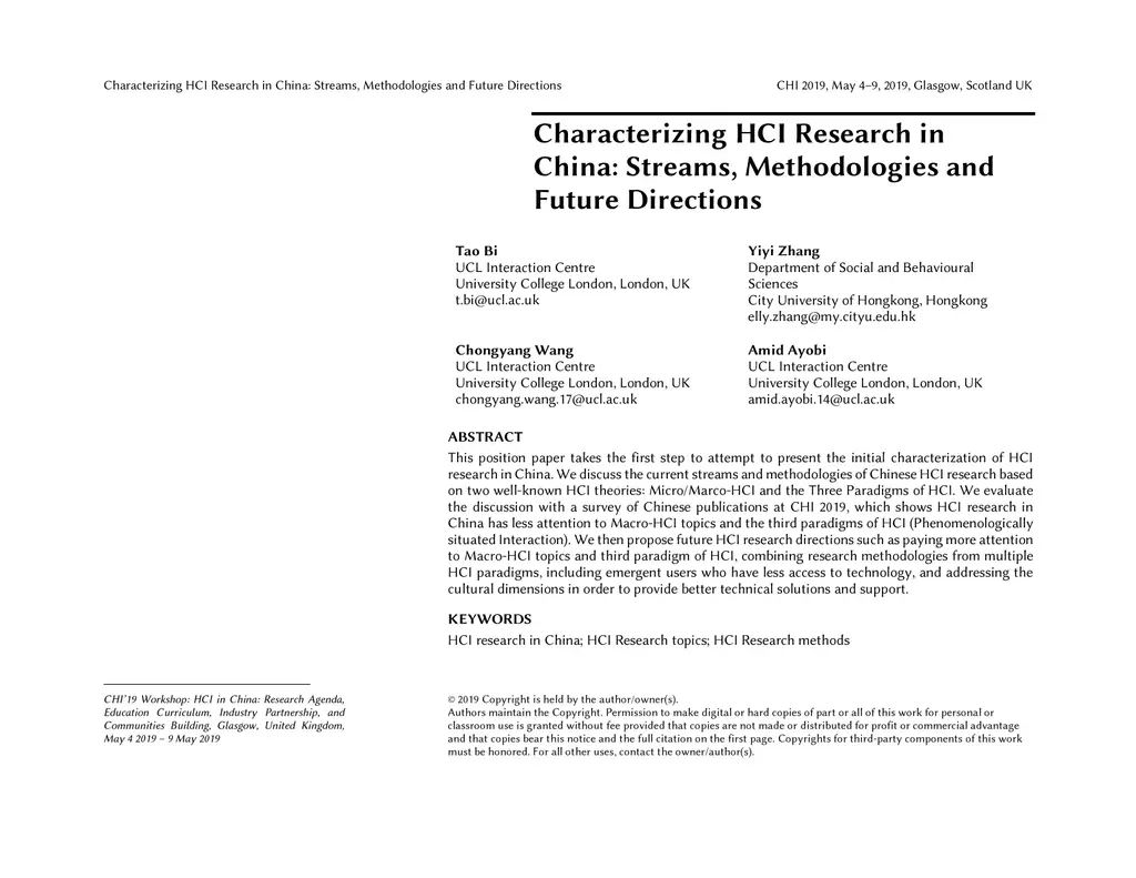 Characterizing HCI Research in China: Streams, Methodologies and Future