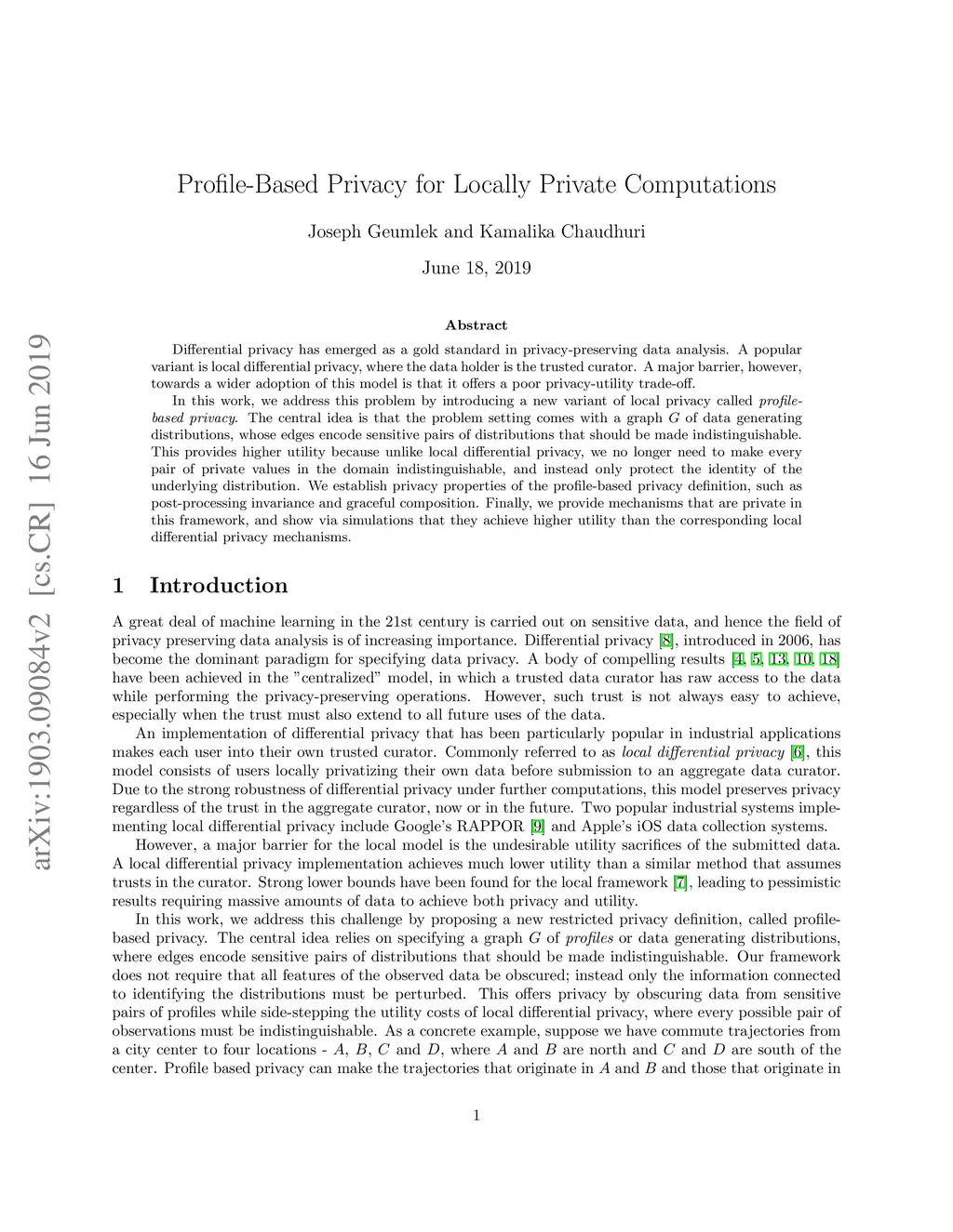 Differential privacy has emerged as a gold standard in privacy-preserving data analysis. A popular variant is local differential privacy, where the data holder is the trusted curator. A major barrier, however, towards a wider adoption of this model is that it offers a poor privacy-utility tradeoff. In this work, we address this problem by introducing a new variant of local privacy called profile-based privacy. The central idea is that the problem setting comes with a graph G of data generating distributions, whose edges encode sensitive pairs of distributions that should be made indistinguishable. This provides higher utility because unlike local differential privacy, we no longer need to make every pair of private values in the domain indistinguishable, and instead only protect the identity of the underlying distribution. We establish privacy properties of the profile-based privacy definition, such as post-processing invariance and graceful composition. Finally, we provide mechanisms that are private in this framework, and show via simulations that they achieve higher utility than the corresponding local differential privacy mechanisms.
