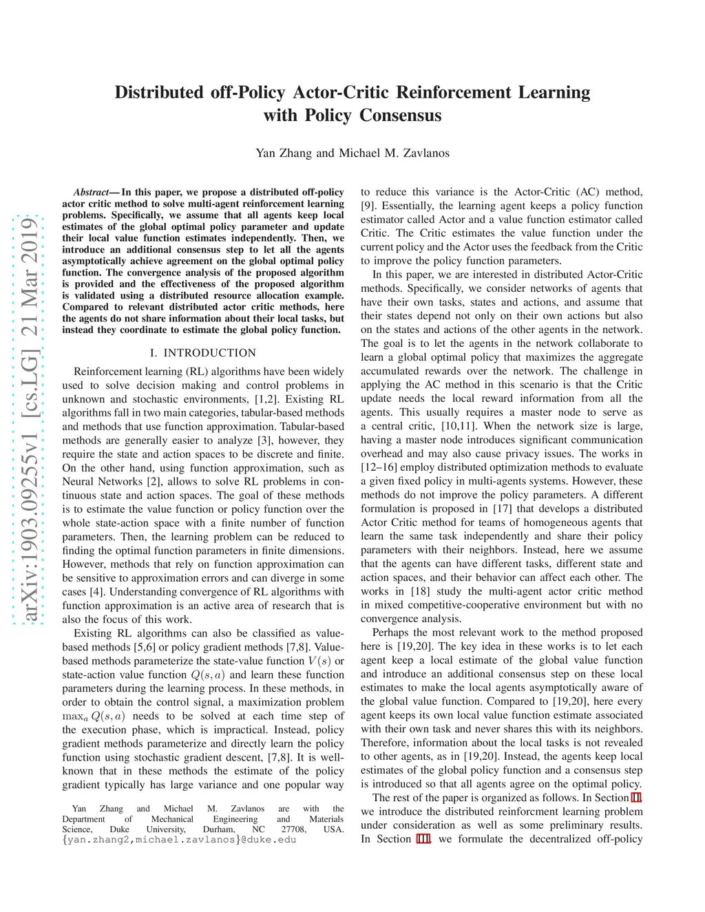 Distributed off-Policy Actor-Critic Reinforcement Learning with Policy