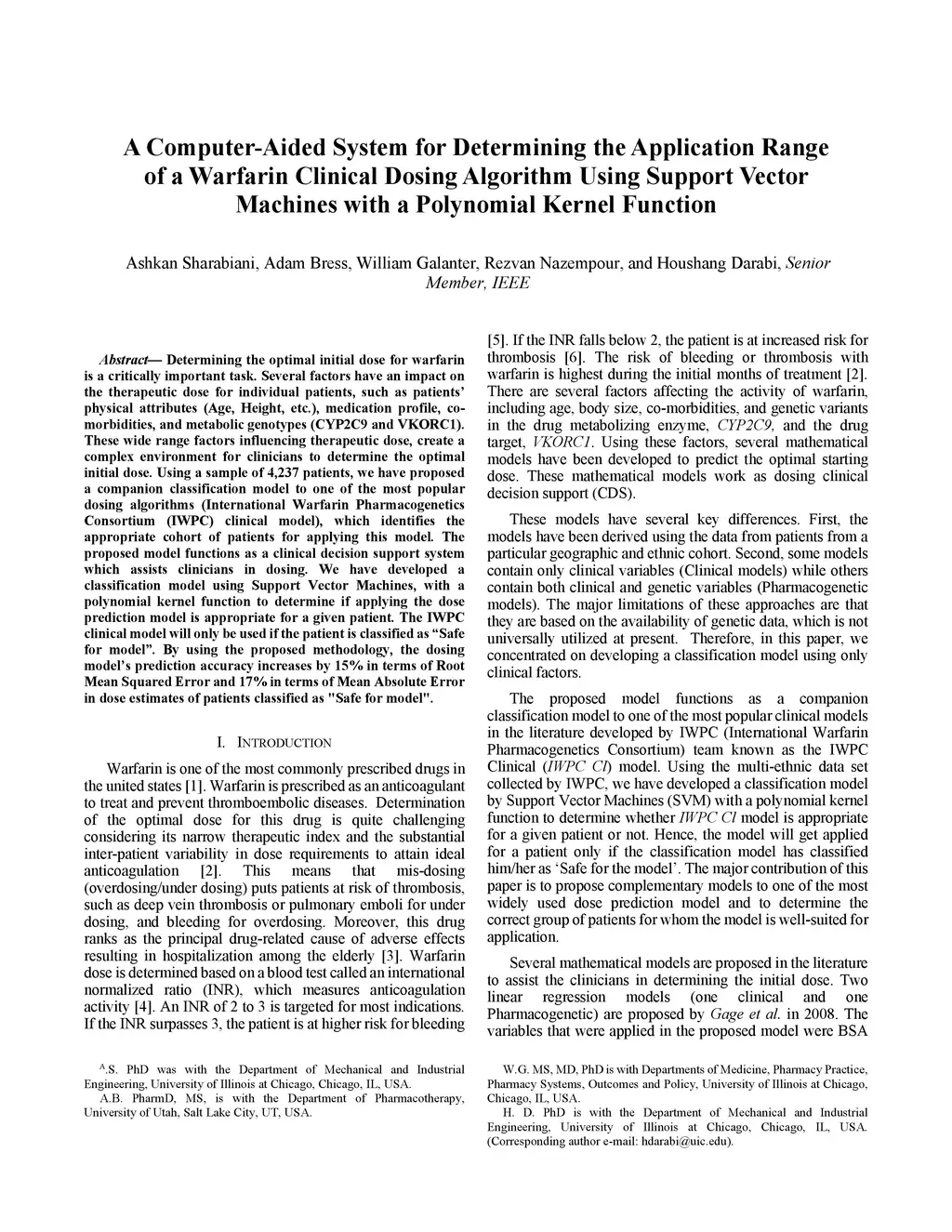 Determining the optimal initial dose for warfarin is a critically important task. Several factors have an impact on the therapeutic dose for individual patients, such as patients' physical attributes (Age, Height, etc.), medication profile, co-morbidities, and metabolic genotypes (CYP2C9 and VKORC1). These wide range factors influencing therapeutic dose, create a complex environment for clinicians to determine the optimal initial dose. Using a sample of 4,237 patients, we have proposed a companion classification model to one of the most popular dosing algorithms (International Warfarin Pharmacogenetics Consortium (IWPC) clinical model), which identifies the appropriate cohort of patients for applying this model. The proposed model functions as a clinical decision support system which assists clinicians in dosing. We have developed a classification model using Support Vector Machines, with a polynomial kernel function to determine if applying the dose prediction model is appropriate for a given patient. The IWPC clinical model will only be used if the patient is classified as "Safe for model". By using the proposed methodology, the dosing mode's prediction accuracy increases by 15 percent in terms of Root Mean Squared Error and 17 percent in terms of Mean Absolute Error in dose estimates of patients classified as "Safe for model".