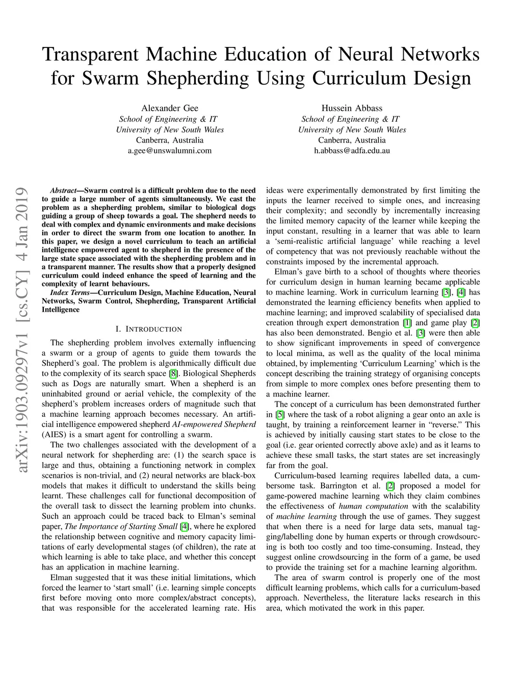 Transparent Machine Education of Neural Networks for Swarm Shepherding