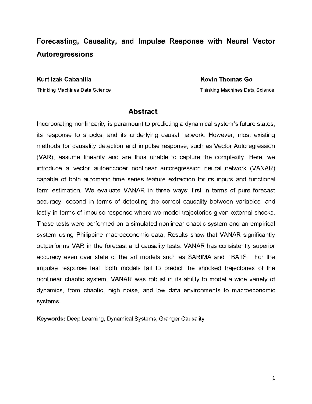 Incorporating nonlinearity is paramount to predicting the future states of a dynamical system, its response to shocks, and its underlying causal network. However, most existing methods for causality detection and impulse response, such as Vector Autoregression (VAR), assume linearity and are thus unable to capture the complexity. Here, we introduce a vector autoencoder nonlinear autoregression neural network (VANAR) capable of both automatic time series feature extraction for its inputs and functional form estimation. We evaluate VANAR in three ways: first in terms of pure forecast accuracy, second in terms of detecting the correct causality between variables, and lastly in terms of impulse response where we model trajectories given external shocks. These tests were performed on a simulated nonlinear chaotic system and an empirical system using Philippine macroeconomic data. Results show that VANAR significantly outperforms VAR in the forecast and causality tests. VANAR has consistently superior accuracy even over state of the art models such as SARIMA and TBATS. For the impulse response test, both models fail to predict the shocked trajectories of the nonlinear chaotic system. VANAR was robust in its ability to model a wide variety of dynamics, from chaotic, high noise, and low data environments to macroeconomic systems.
