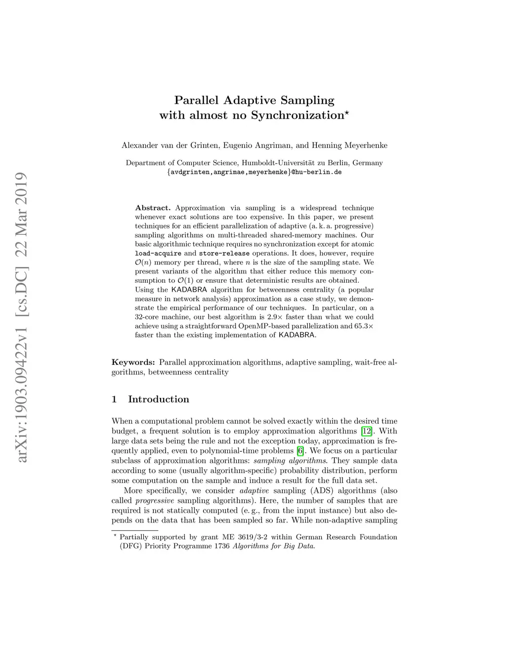 Approximation via sampling is a widespread technique whenever exact solutions are too expensive. In this paper, we present techniques for an efficient parallelization of adaptive (a. k. a. progressive) sampling algorithms on multi-threaded shared-memory machines. Our basic algorithmic technique requires no synchronization except for atomic load-acquire and store-release operations. It does, however, require O(n) memory per thread, where n is the size of the sampling state. We present variants of the algorithm that either reduce this memory consumption to O(1) or ensure that deterministic results are obtained. Using the KADABRA algorithm for betweenness centrality (a popular measure in network analysis) approximation as a case study, we demonstrate the empirical performance of our techniques. In particular, on a 32-core machine, our best algorithm is 2.9x faster than what we could achieve using a straightforward OpenMP-based parallelization and 65.3x faster than the existing implementation of KADABRA.
