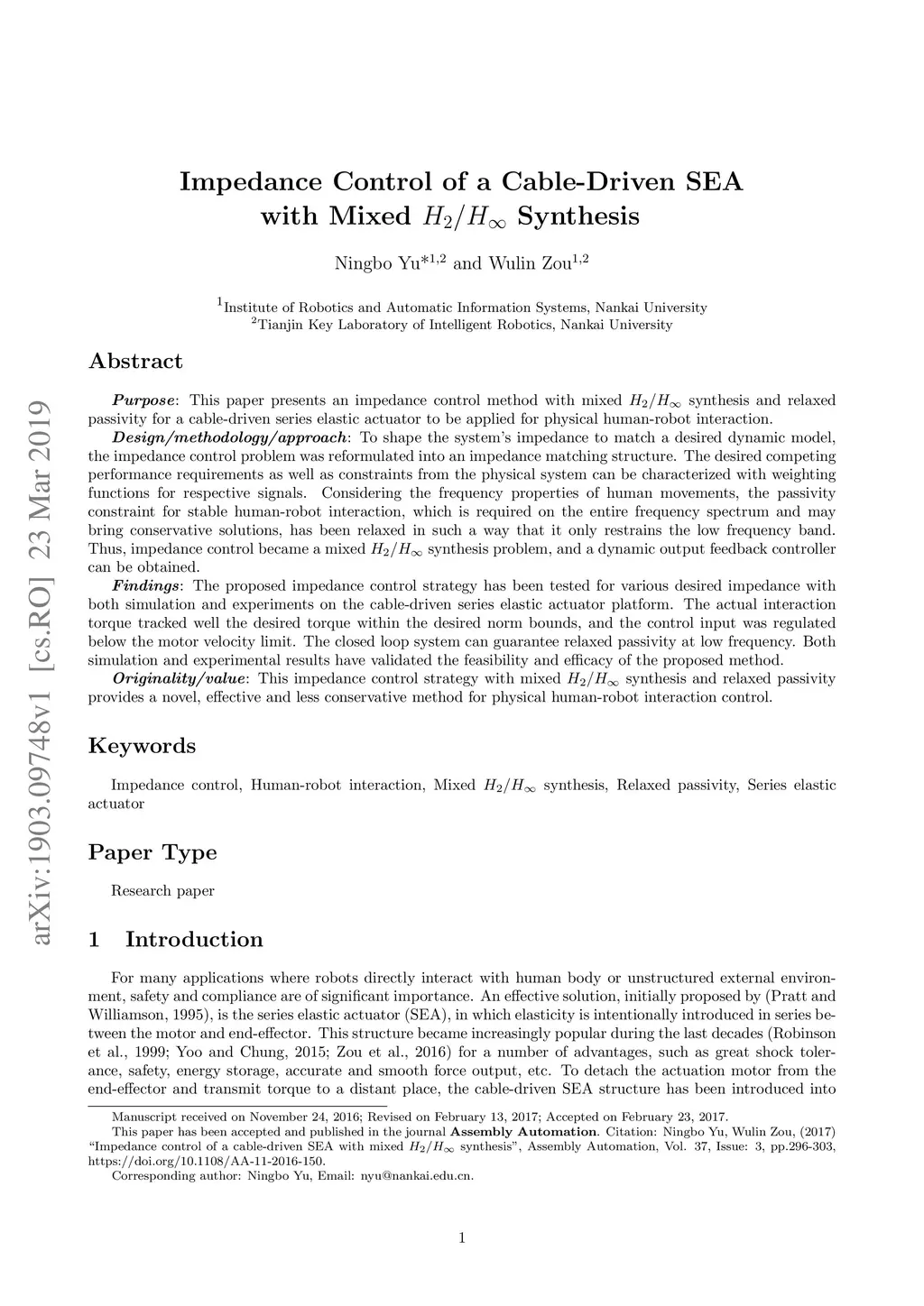 Impedance control of a cable-driven SEA with mixed