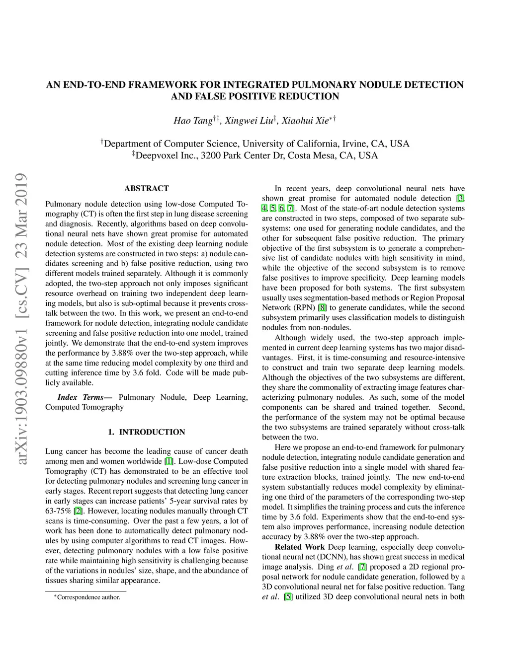 An End-to-end Framework For Integrated Pulmonary Nodule Detection and