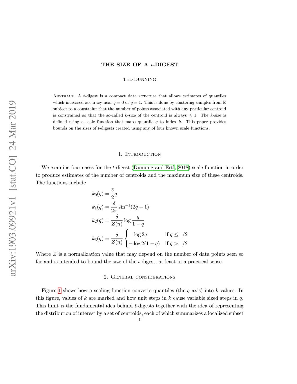 A -digest is a compact data structure that allows estimates of quantiles which increased accuracy near or . This is done by clustering samples from subject to a constraint that the number of points associated with any particular centroid is constrained so that the so-called -size of the centroid is always . The -size is defined using a scale function that maps quantile to index . This paper provides bounds on the sizes of -digests created using any of four known scale functions.