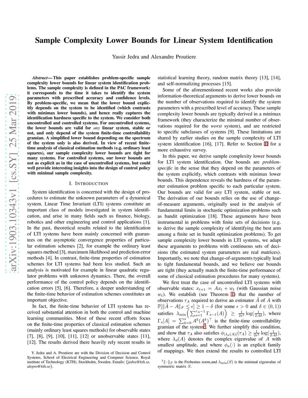This paper establishes problem-specific sample complexity lower bounds for linear system identification problems. The sample complexity is defined in the PAC framework: it corresponds to the time it takes to identify the system parameters with prescribed accuracy and confidence levels. By problem-specific, we mean that the lower bound explicitly depends on the system to be identified (which contrasts with minimax lower bounds), and hence really captures the identification hardness specific to the system. We consider both uncontrolled and controlled systems. For uncontrolled systems, the lower bounds are valid for any linear system, stable or not, and only depend of the system finite-time controllability gramian. A simplified lower bound depending on the spectrum of the system only is also derived. In view of recent finitetime analysis of classical estimation methods (e.g. ordinary least squares), our sample complexity lower bounds are tight for many systems. For controlled systems, our lower bounds are not as explicit as in the case of uncontrolled systems, but could well provide interesting insights into the design of control policy with minimal sample complexity.