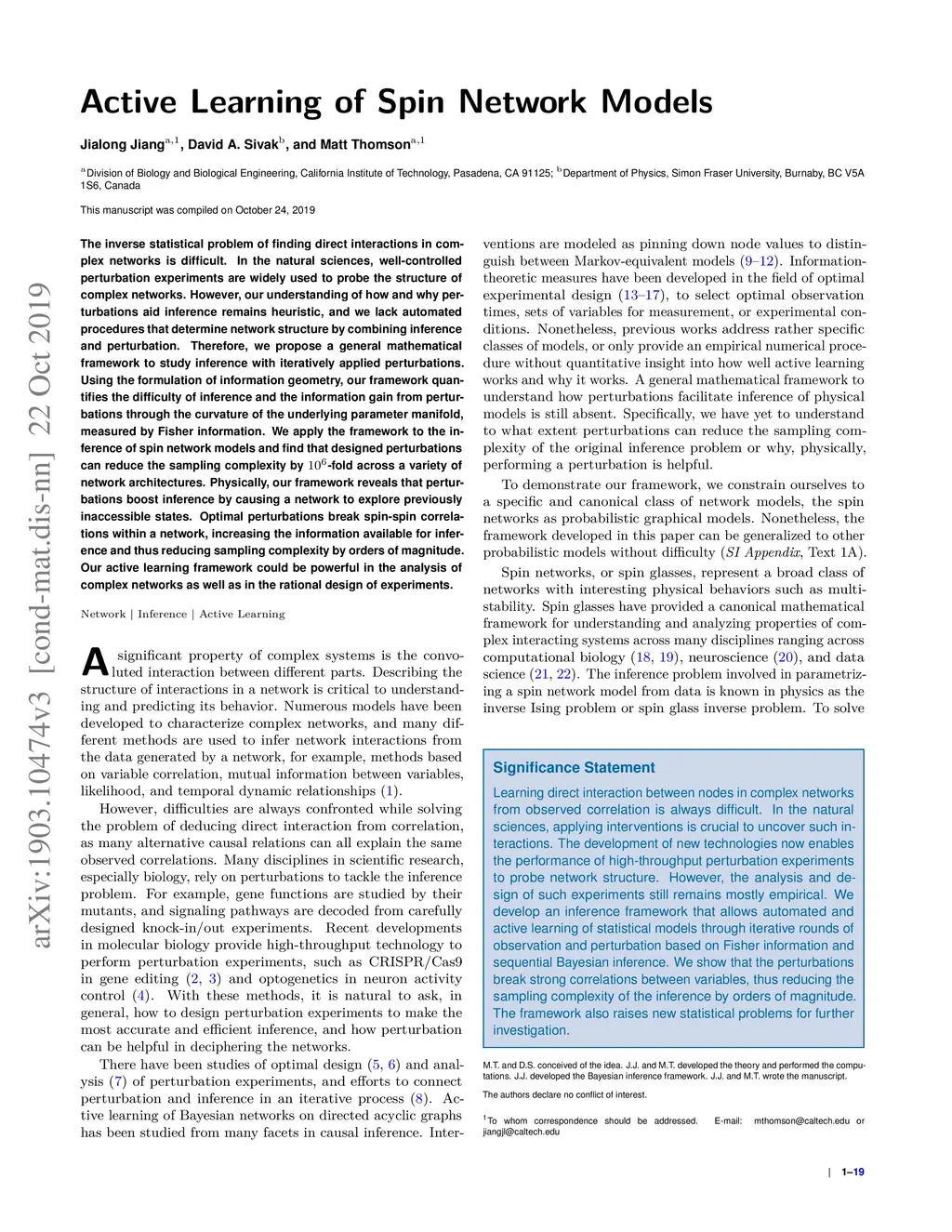 Active Learning of Spin Network Models