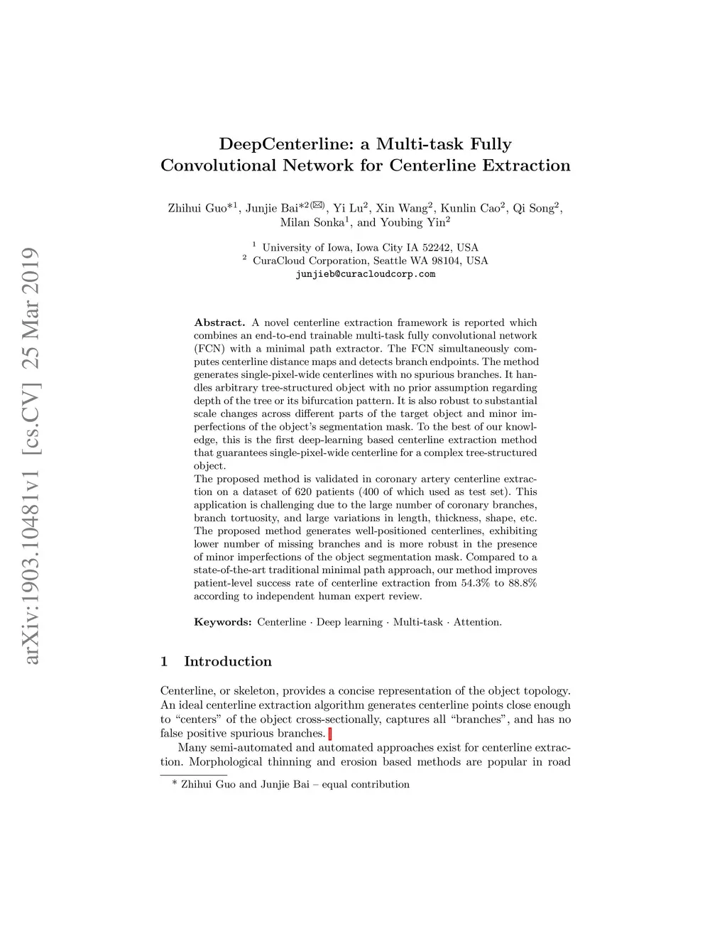 DeepCenterline: a Multi-task Fully Convolutional Network for Centerline